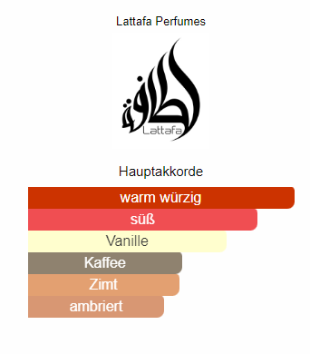 Khamrah Qahwa von Lattafa Perfumes gehört zur Duftfamilie Orientalisch und ist ein Unisex-Parfum für Frauen und Männer. Die Komposition eröffnet mit würzigen Noten von Zimt, Kardamom und Ingwer. Im Herzen entfalten sich die süßen Nuancen von Praline, kandierten Früchten und weißen Blüten. Die Basis rundet den Duft mit warmen und sinnlichen Akkorden von Vanille, Kaffee, Tonkabohne, Benzoeharz und Moschus ab. Ein harmonisches Dufterlebnis für alle, die das Besondere lieben.